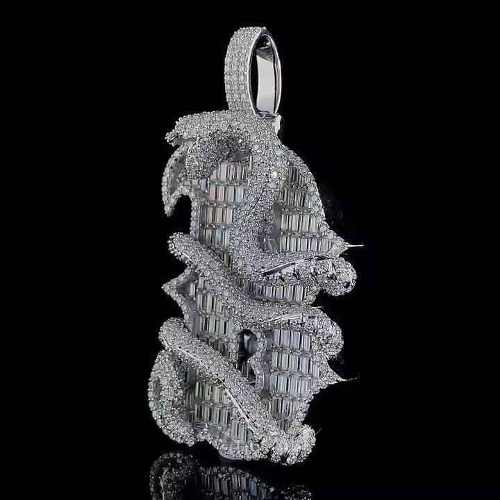 จี้รูปตัวอักษร B ชุบโรเดียมแบบ Iced Out พร้อมสายสร้อยแบบงู สไตล์ฮิปฮอป เครื่องประดับหรูหราสำหรับงานปาร์ตี้ ดีไซน์แบบ Channel Set