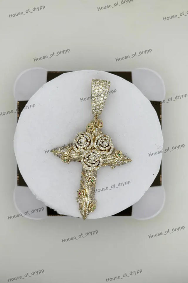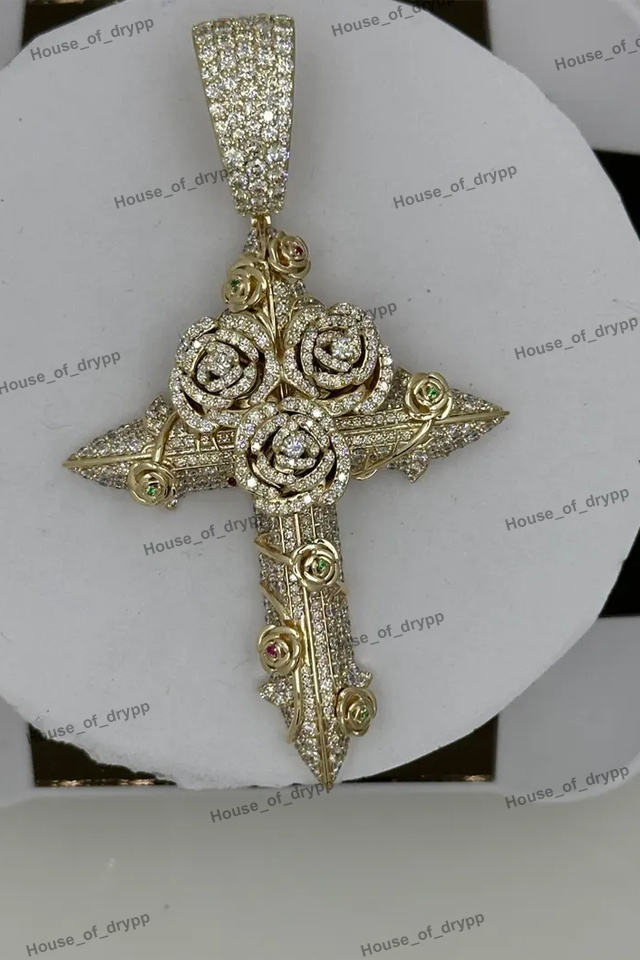 จี้สร้อยคอรูปกางเขนสีเงินประดับเพชรโมอิสซาไนต์ ดีไซน์ลายดอกไม้ สไตล์ฮิปฮอป ของขวัญสุดเท่สำหรับทุกเพศ