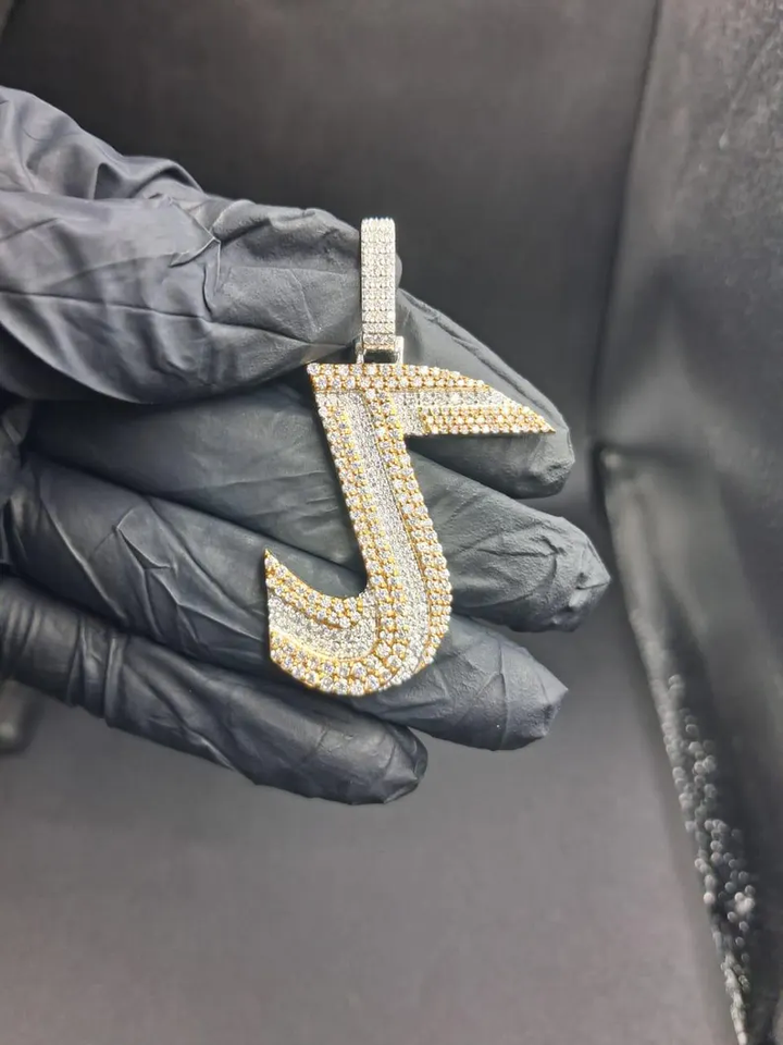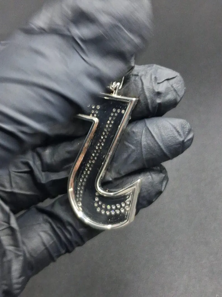 จี้รูปตัว J แบบกำหนดเองชุบโรเดียมประดับเพชรโมอิสซาไนต์ VVS สีเงินแบบ Iced Out สไตล์ฮิปฮอป พร้อมจี้ตัวอักษรสำหรับทุกเพศ