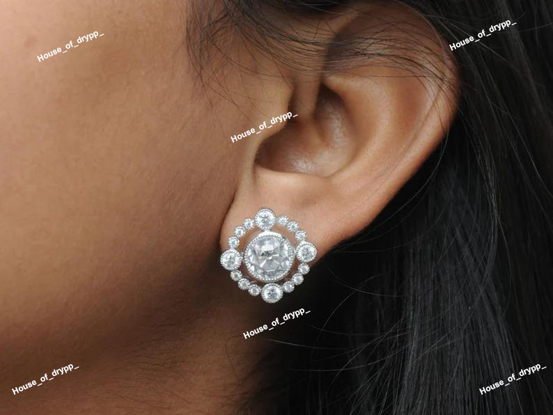 ต่างหูเงินทรงกลมประดับเพชรโมอิสซาไนต์หรูหรา ระยิบระยับ เหมาะสำหรับงานแต่งงาน งานเลี้ยง สไตล์คลาสสิก