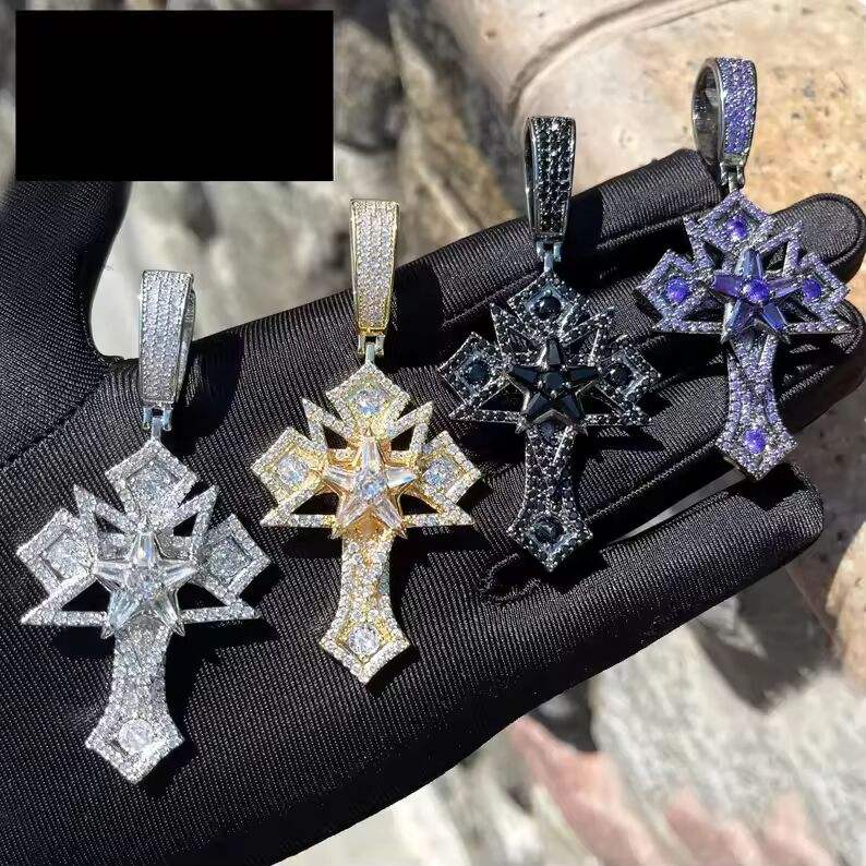 จี้รูปดาวประดับเพชร CZ สีทอง เงิน ดำ ม่วง สไตล์ฮิปฮอป สร้อยคอจี้รูปดาวประดับเพชรแบบไมโครเพฟ เครื่องประดับนำโชคทางศาสนา