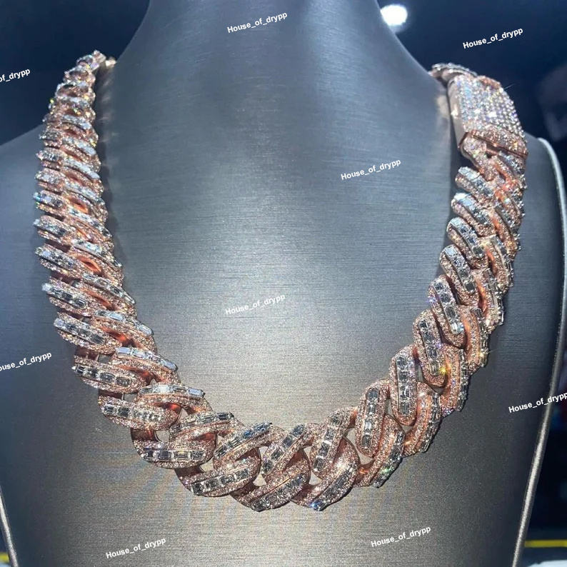 Iced Out VVS Cuban Chain VVS Moissanite Diamond 925 Silver Pave Statement Chain For Unisex