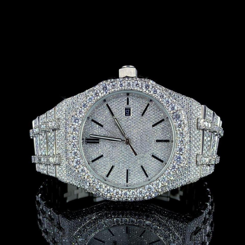 นาฬิกาข้อมือสแตนเลสสตีลประดับเพชรโมอิสซาไนต์ VVS ระดับพรีเมียมสำหรับผู้ชาย สไตล์ฮิปฮอป หรูหรา กันน้ำ