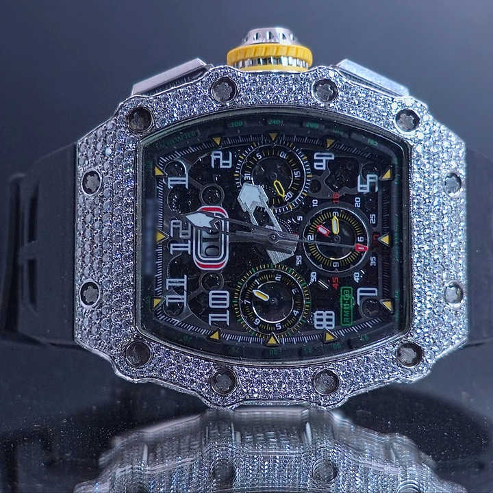 นาฬิกาควอตซ์แบบเหรียญโบราณขนาด 40 มม. ประดับเพชรโมอิสซาไนต์ VVS ระดับ Iced Out สายยาง ดีไซน์หรูหรา สไตล์ฮิปฮอป สำหรับผู้ชาย