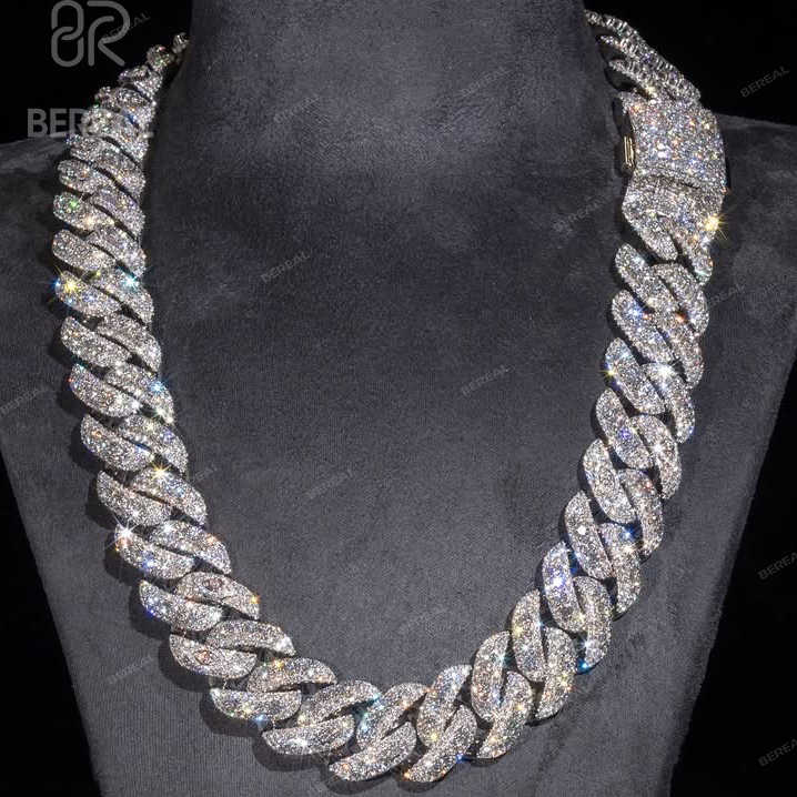 สร้อยคอเชื่อมเพชร Moissanite Cuban จากโรงงานเอาท์เล็ตสีขาวทอง925เงินคิวบาเครื่องประดับสำหรับผู้ชาย