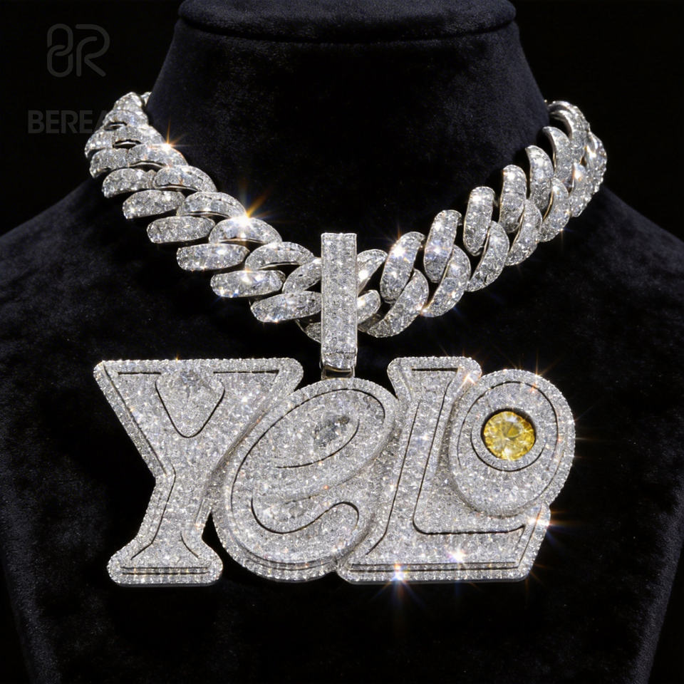 สร้อยคอจี้เพชรโมอิสซาไนต์แบบ Iced Out VVS สไตล์ฮิปฮอป ตัวอักษรตามสั่ง เงินแท้ 925 ชุบทอง 18K จี้ชื่อสำหรับผู้ชาย เครื่องประดับคุณภาพสูง