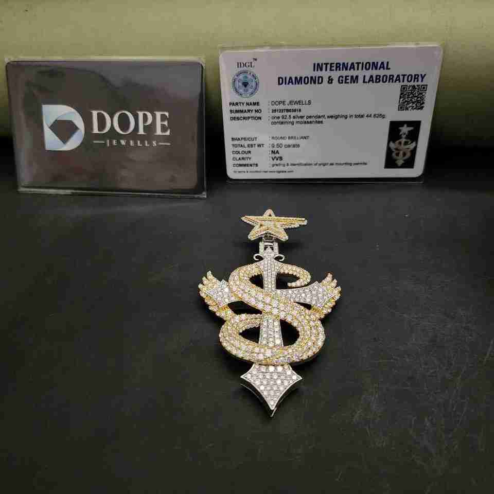 จี้รูปตัวอักษร S แบบมีน้ำแข็ง ประดับดาว พร้อมตัวล็อกแบบกำหนดเองได้ ทำจากสแตนเลสสตีล ชุบแพลตตินัม ผลิตจากเงินสเตอร์ลิงแท้ DOPE JEWELLS