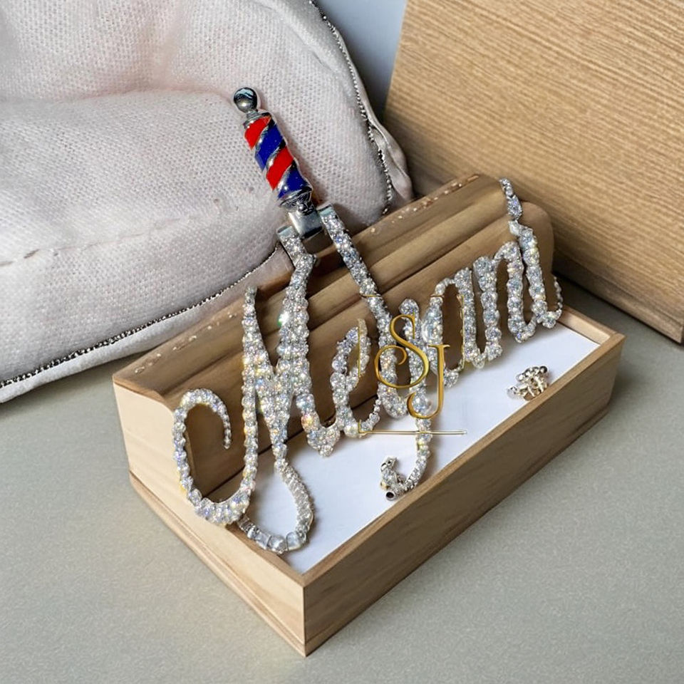 สร้อยคอเงินแท้ 925 ดีไซน์ทันสมัย ประดับจี้ตัวอักษรแบบคัสตอม พร้อมจี้รูปเสาตัดผม ประดับเพชรแล็บโกรว์ ของขวัญสุดพิเศษ