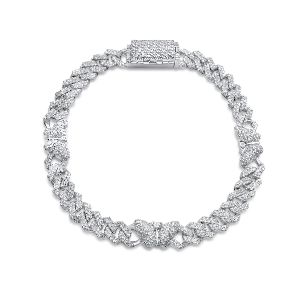 Iced out Cuban Link White Gold Bracelet VVS Moissanite Round Cut Diamond Wedding For Women's 925 Sterling Silver