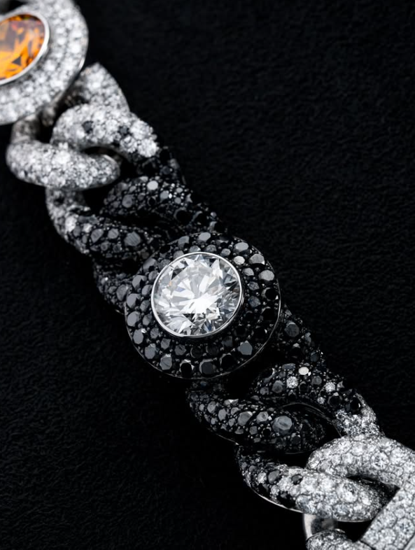 สร้อยคอจี้ค้างคาวสีดำและสีเงินลายเพชรโมอิสสำหรับผู้ชายเครื่องประดับแฟชั่นสุดหรูแนวฮิปฮอปสุดหรู