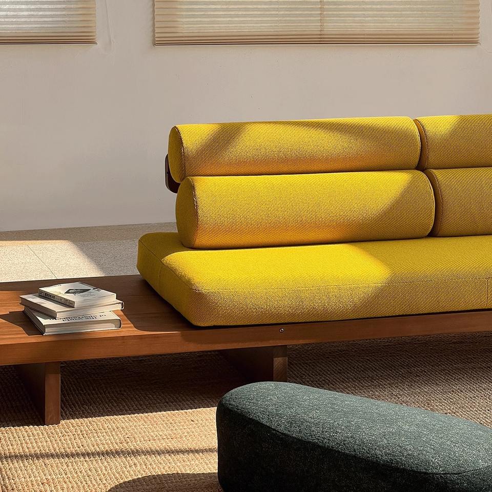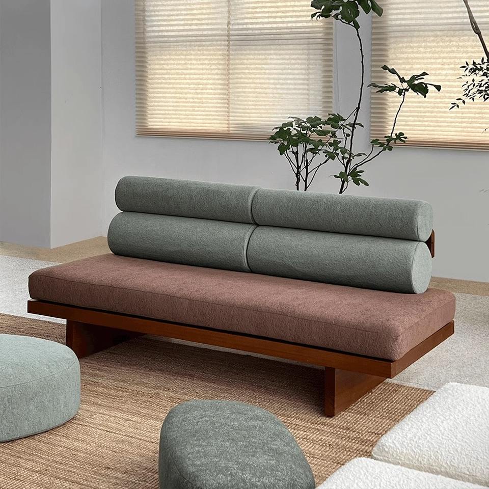 โซฟาไอซ์แลนด์ทรงสี่เหลี่ยมหุ้มผ้าบุโฟม โครงไม้เนื้อแข็ง สไตล์มินิมอล สำหรับห้องนั่งเล่น ใช้ในบ้าน