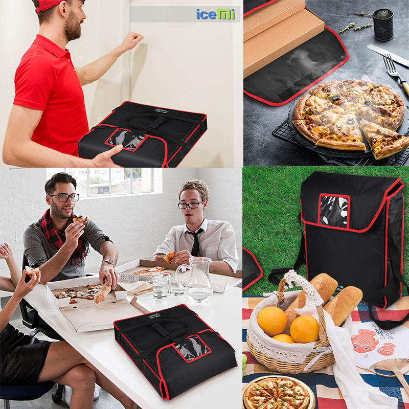 กระเป๋าส่งอาหารแบบมีฉนวนขนาดใหญ่ Icemi ผลิตจากวัสดุ 600D สำหรับส่งพิซซ่าและพัสดุ สำหรับมอเตอร์ไซค์และปิกนิก