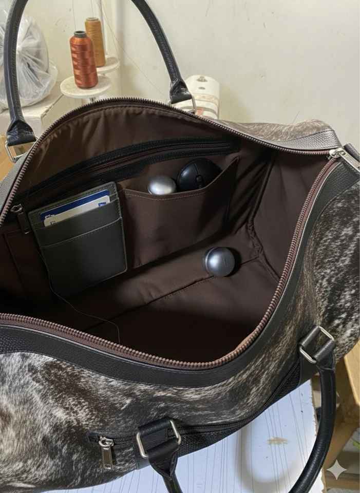 กระเป๋าเดินทางหนังวัวแท้ลายขนสัตว์สุดคลาสสิก พร้อมซิปปิด ดีไซน์สไตล์ตะวันตก พกพาสะดวก รุ่น LHDB-0178