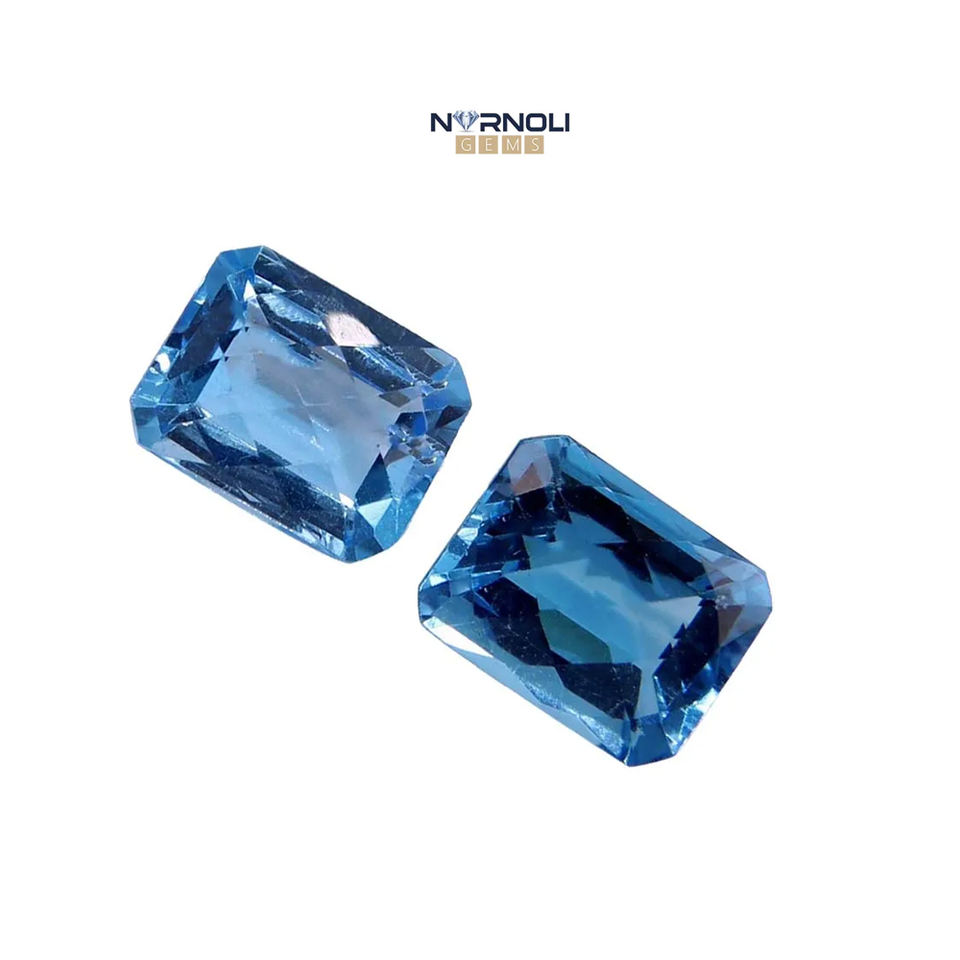 พลอยบุษราคัมสีฟ้าน้ำแข็ง8.31กะรัตเซมิเพรเชียสคู่ละ2ชิ้นมรกตตัดความร้อนธรรมชาติ10x8มมพลอยบุษราคัมสีฟ้า