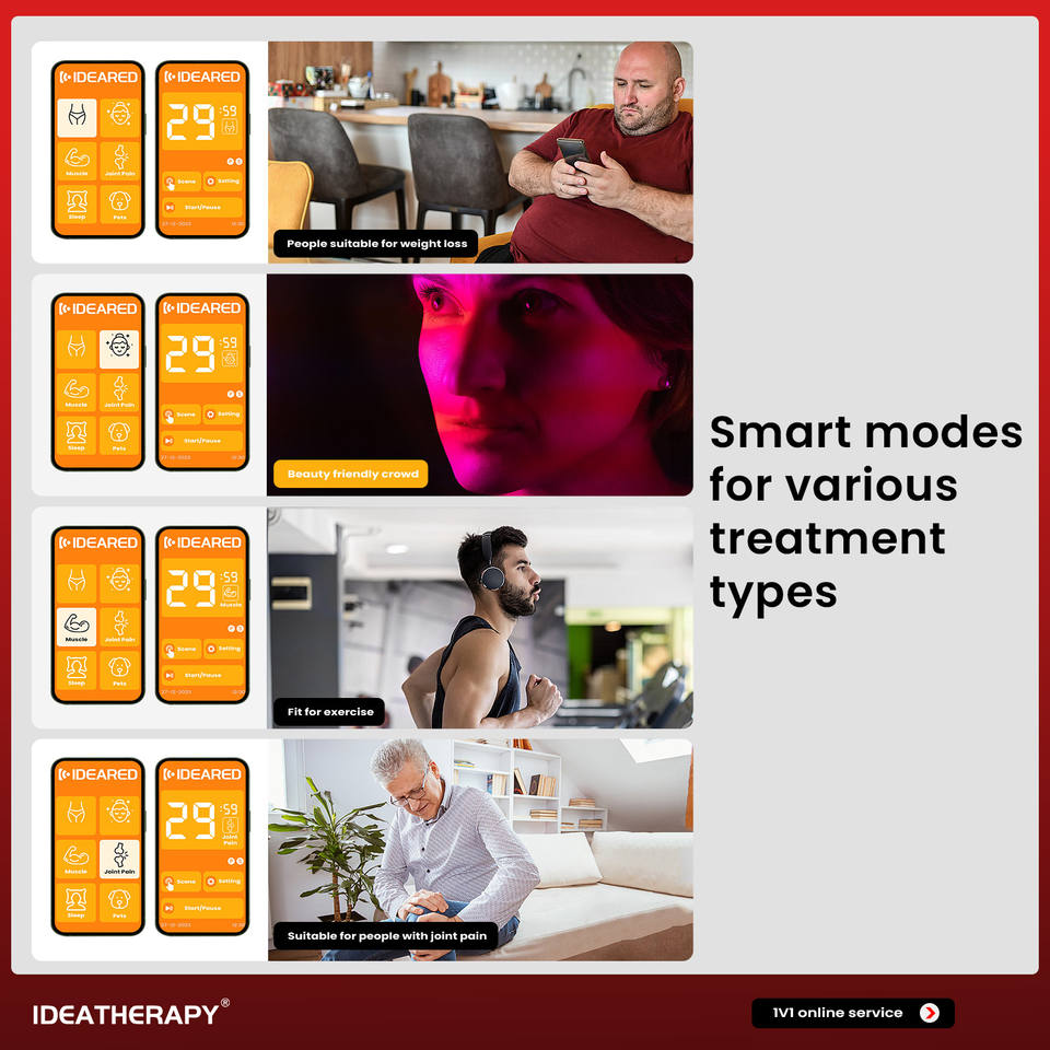 แผงบำบัดด้วยแสงสีแดงแบบเต็มตัว Ideatherapy RLPRO1000 8-Wave ควบคุมผ่านแอปพลิเคชัน อุปกรณ์อินฟราเรดสำหรับบรรเทาอาการปวด ปลั๊กแบบ ZA สำหรับมือ