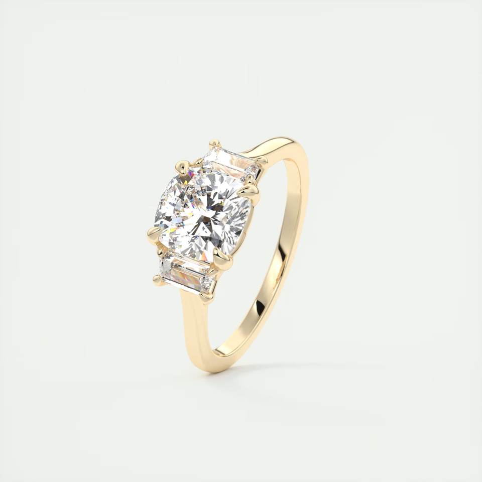 Igi แหวนหมั้นเพชร CVD หินสามชิ้นที่ผ่านการรับรองในห้องปฏิบัติการแหวนเพชรที่ปลูกในห้องปฏิบัติการและตัดเป็นรูปสี่เหลี่ยมคางหมูแหวนแต่งงานที่สร้างขึ้น
