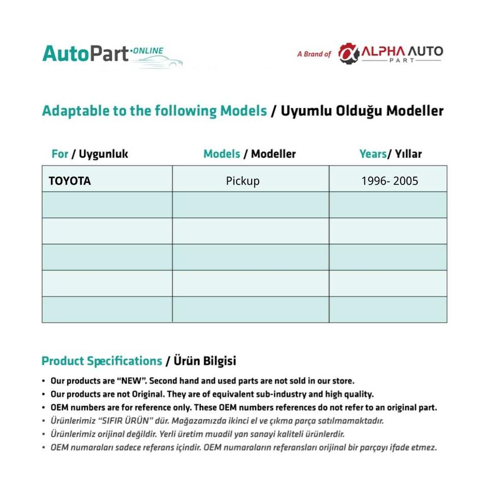 เพลาล็อคเพลาจุดระเบิดสำหรับรถกระบะโตโยต้า1996-2005ไม่: 78460 (จัดส่งจากผู้ผลิตตุรกี) รหัสสินค้า: IL2223