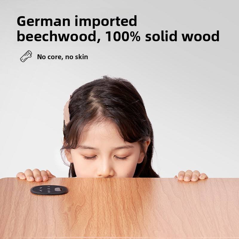 โต๊ะเรียนเด็ก Igrow โต๊ะอ่านหนังสือปรับระดับได้ด้วยไฟฟ้า ชุดโต๊ะเก้าอี้ไม้เนื้อแข็งสำหรับนักเรียนชั้นประถมศึกษาที่บ้าน