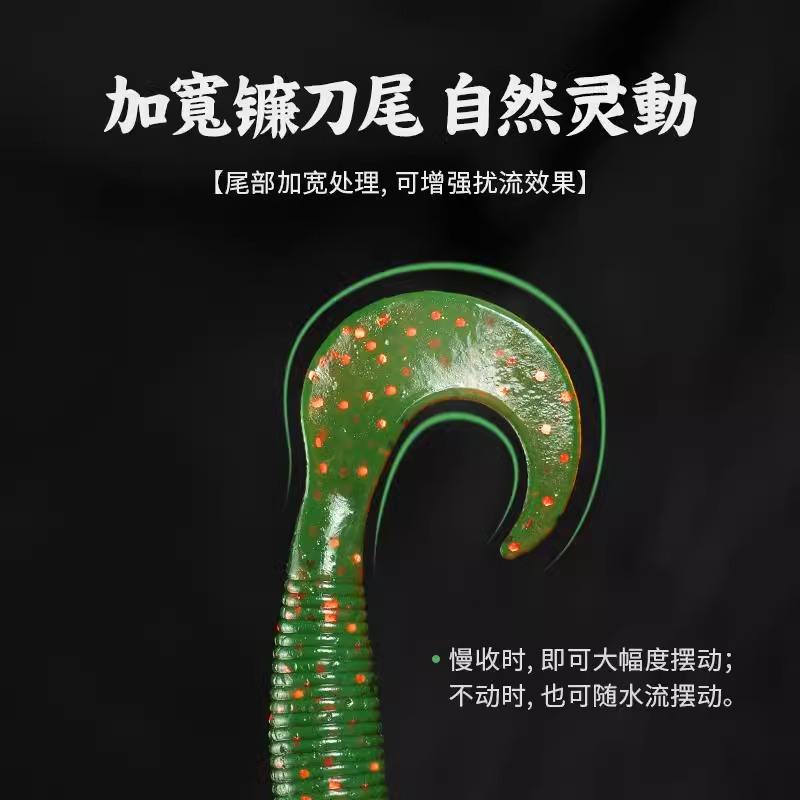Ikeba เหยื่อล่อแบบใบมีดบ่ออ่อนเหยื่อหนอนหางหยิกขนาด3.5นิ้วสำหรับเหยื่อตกปลาเบสด้านล่างพร้อมหัว Juggernaut และตะขอข้อเหวี่ยง