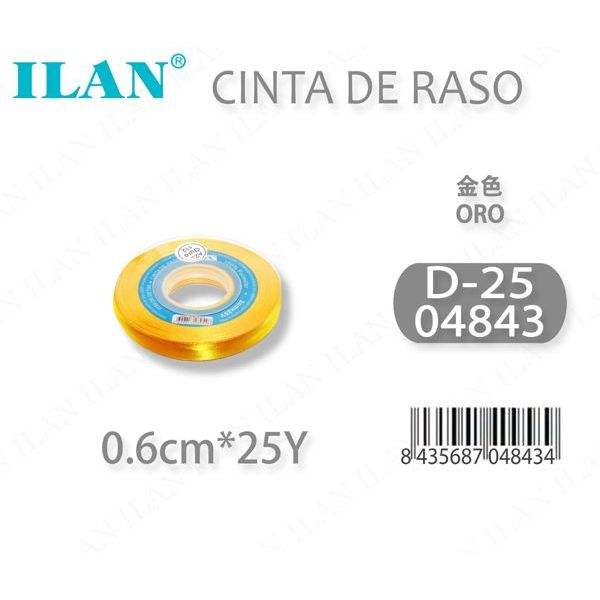 ริบบิ้นผ้าซาติน 0.6 ซม. 25 หลา สีทอง D-25 ORO