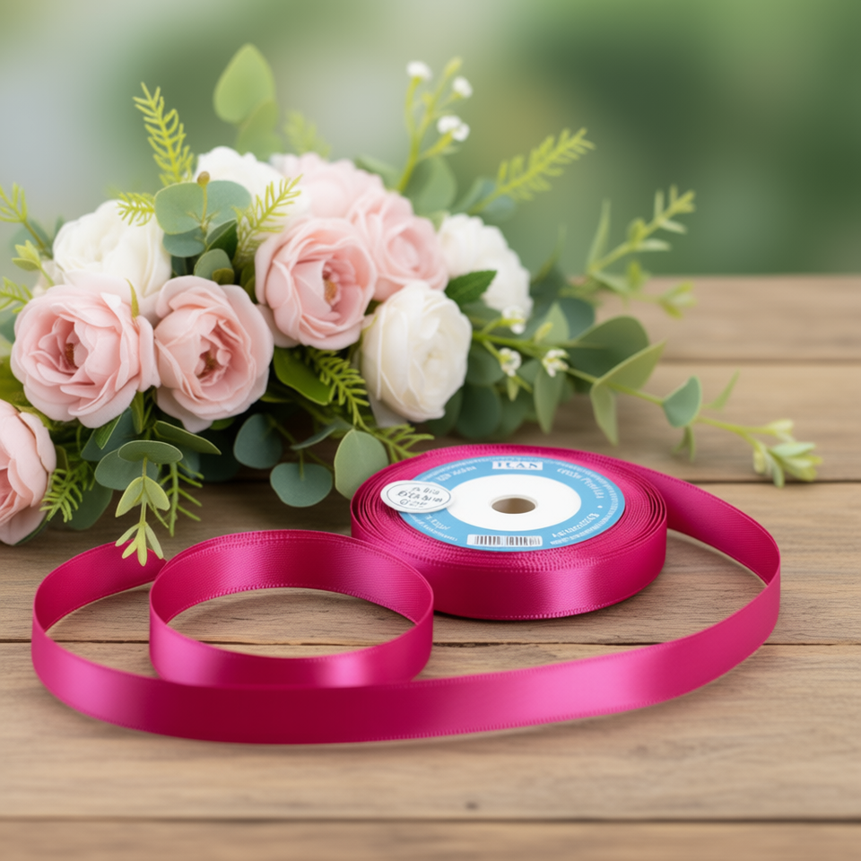 ริบบิ้นผ้าซาติน 0.6 ม. 25 หลา สีบานเย็น D15