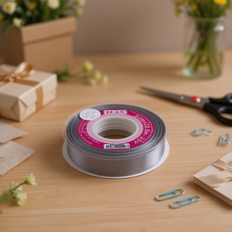 ริบบิ้นผ้าซาติน 2.0 ซม. 25 หลา สีเทาเดนิม D-42