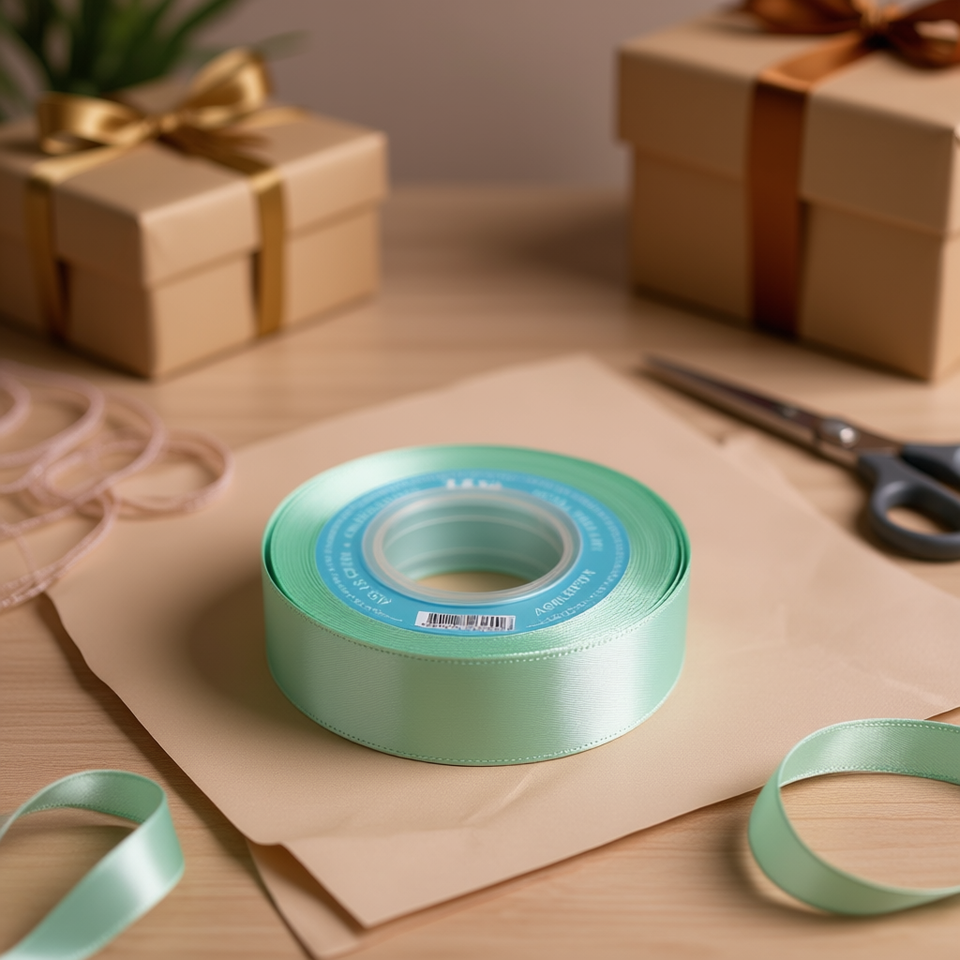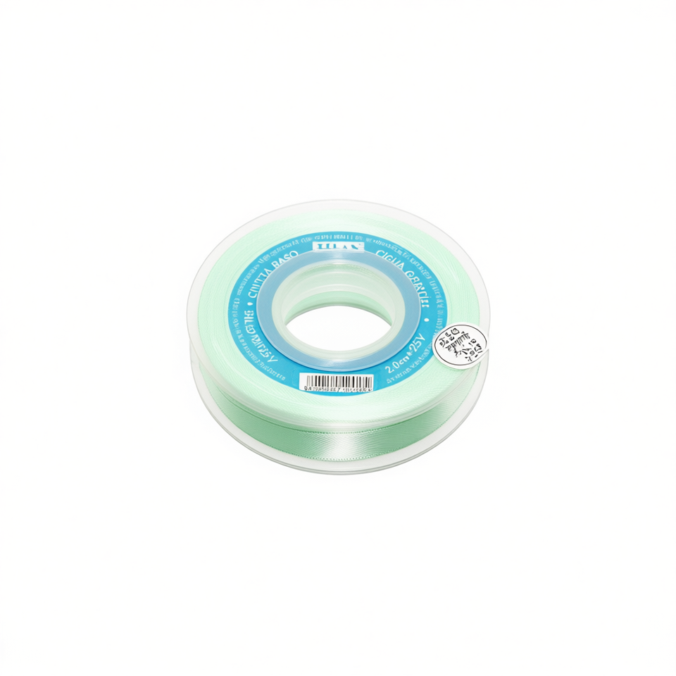 ริบบิ้นผ้าซาติน 2.0 ซม. 25 หลา สีเขียวอมฟ้า D33