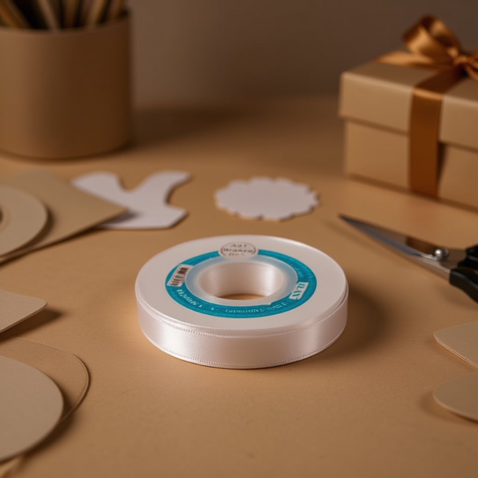 ริบบิ้นผ้าซาติน 2.5 ซม. 25 หลา สีขาว D01