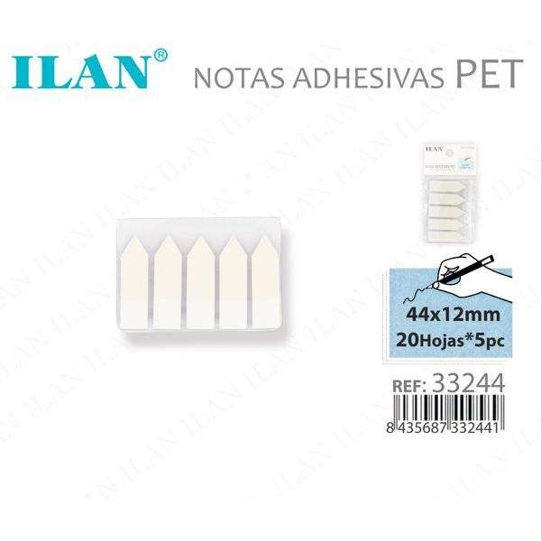 อิลัน ธงสัตว์เลี้ยงแบบมีกาว 44x12 มม. สีขาว รูปทรงแหลม 20 แผ่น 5 ชิ้น