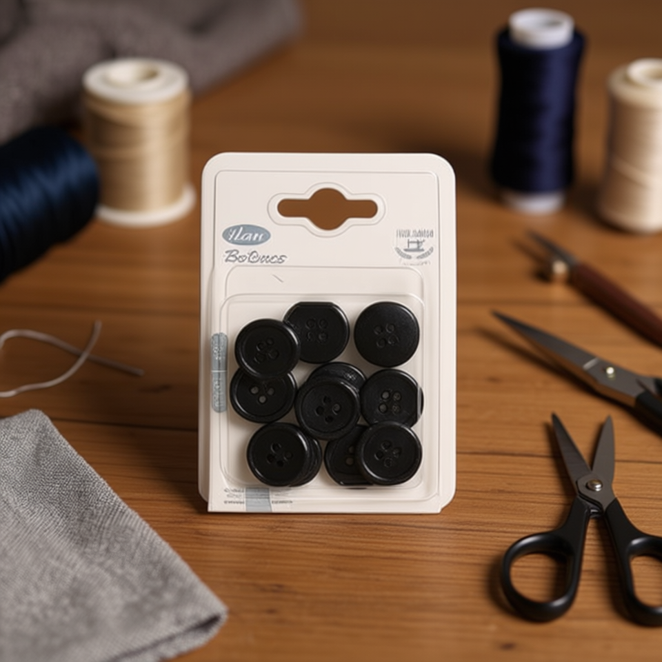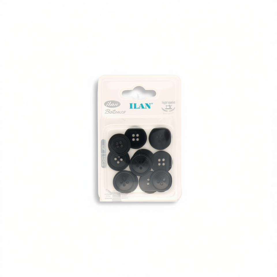 กระดุมสีดำ Ilan ขนาด 20 มม. แบบ 4 รู แพ็ค 12 ชิ้น สำหรับเย็บเสื้อผ้า