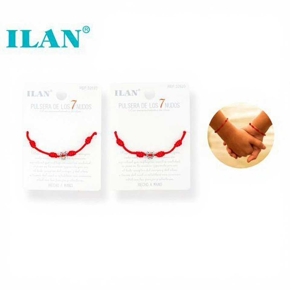กำไลข้อมือสไตล์คลาสสิค Ilan สำหรับทุกเพศทุกวัย แบบ 7 ปม เชือกสีแดง ชุบเงิน พร้อมจี้รูปเกือกม้าเงินทิเบต