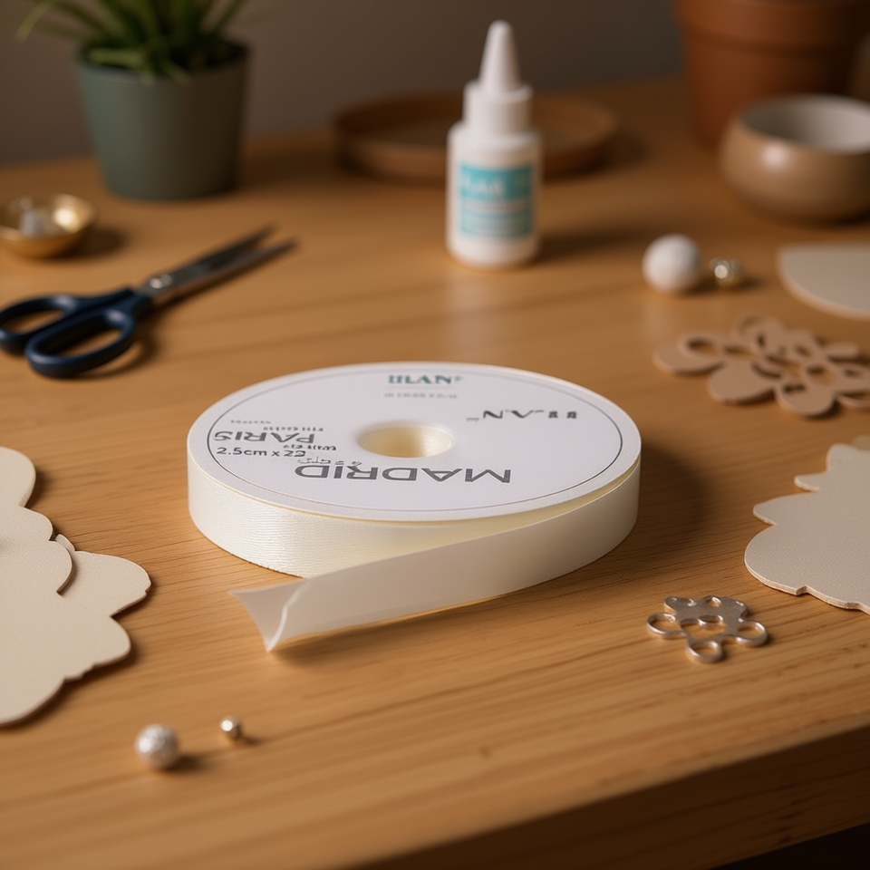 ริบบิ้นผ้าฝ้ายสีขาวขนาด 2.5 ซม. x 22 ม. สำหรับงานฝีมือและการตกแต่ง