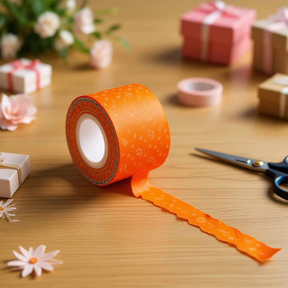 อิลัน ซินต้า โปโคลิน่าริบบิ้น 1.0 ซม.x10 หลา เทปตกแต่งงานฝีมือผ้าป๊อปลินสีส้ม