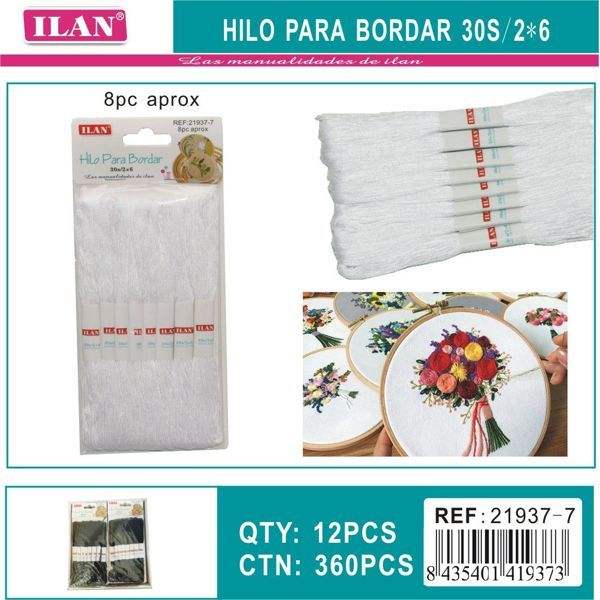 ไหมปักอิลัน 30s/2*6 สีขาว สำหรับงานปักครอสติชและงานเย็บปักถักร้อย