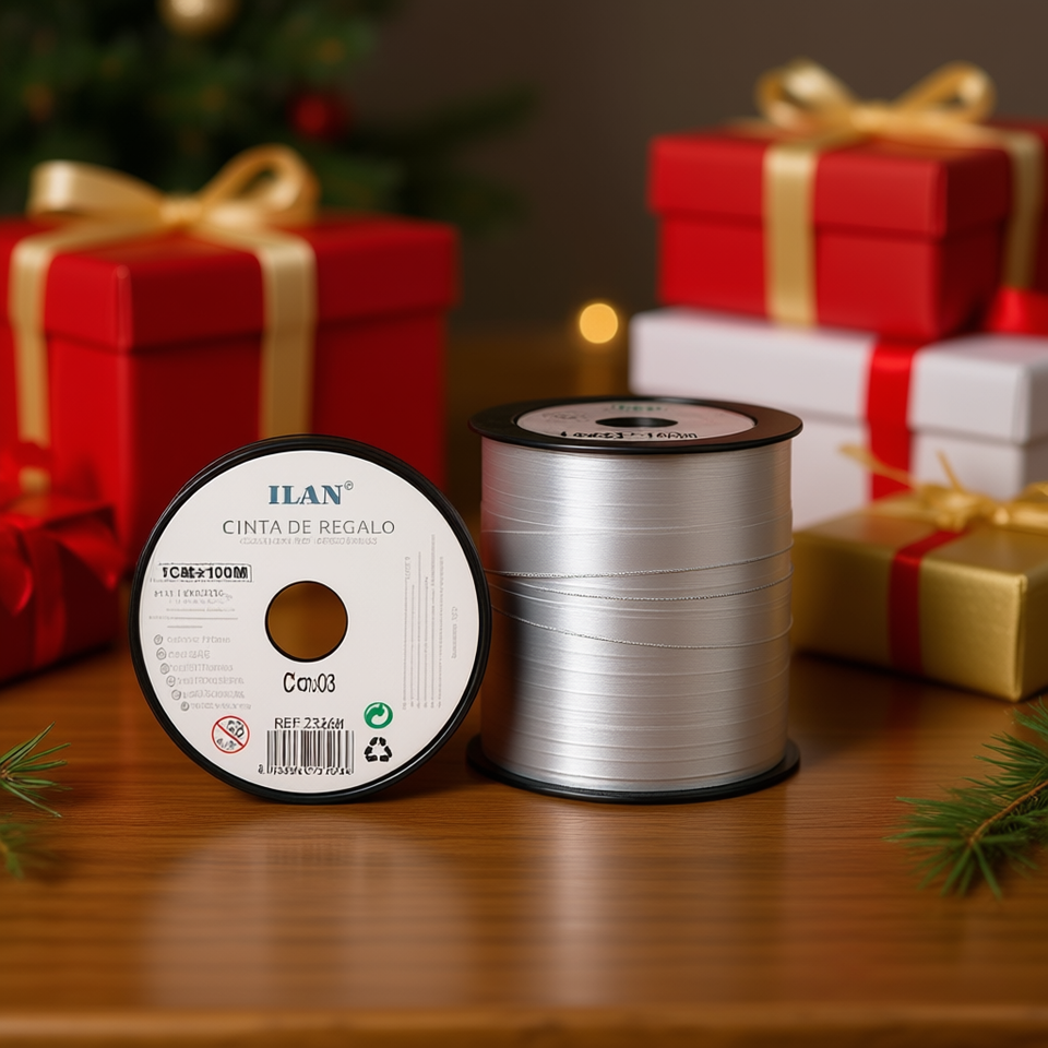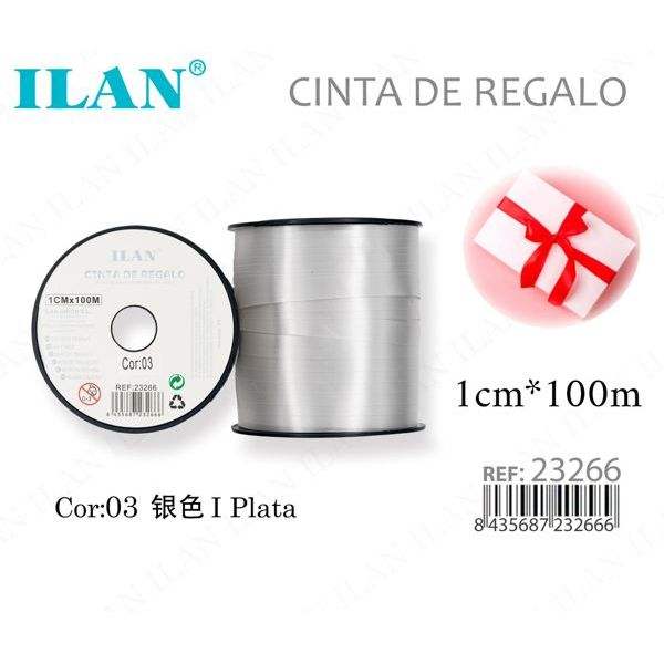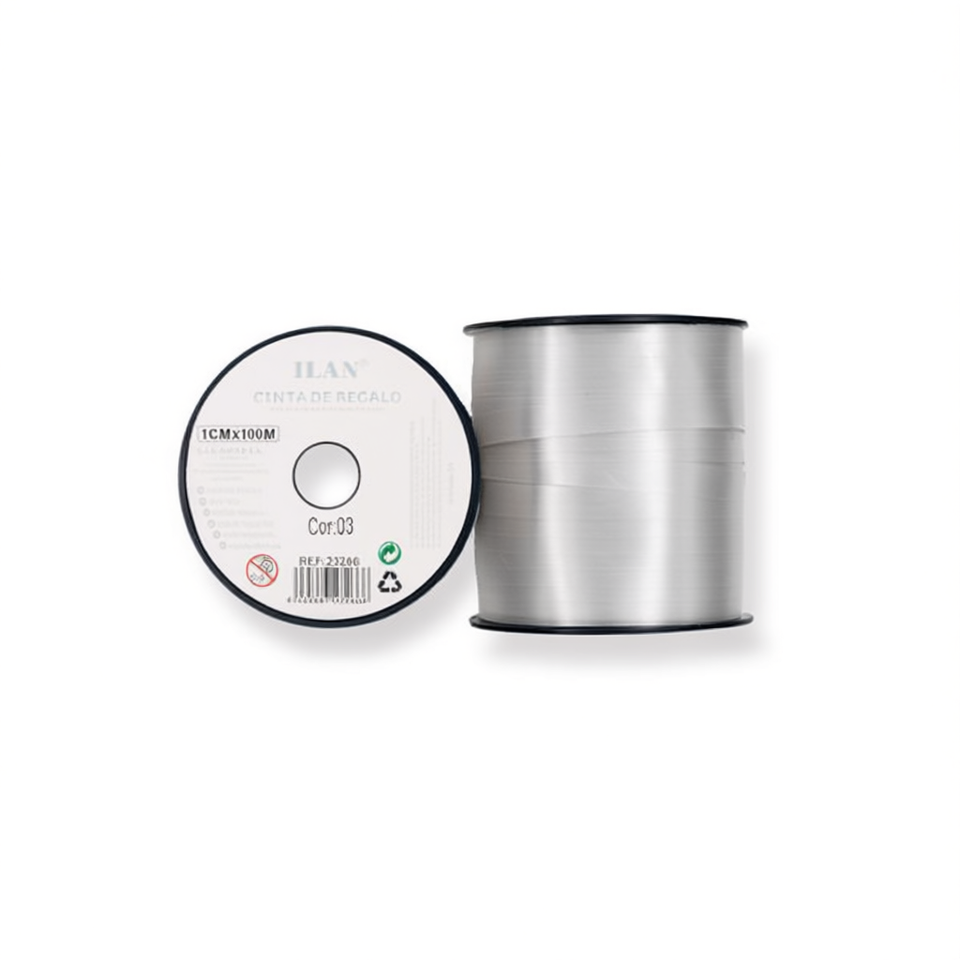 ริบบิ้นของขวัญอิลัน ขนาด 1 ซม. x 100 ม. สีเงิน สำหรับบรรจุภัณฑ์