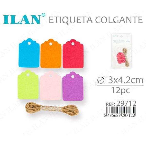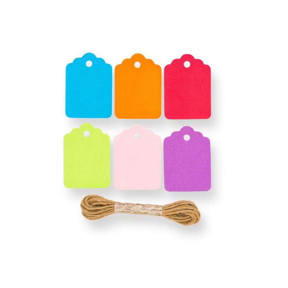 ป้ายแขวนแบบไดคัท Ilan ขนาด 3x4.2 ซม. 12 ชิ้น ป้ายกระดาษเคลือบด้านหลากสีสำหรับป้ายเสื้อผ้า