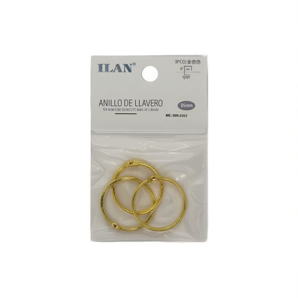 พวงกุญแจอิลัน 35 มม. สีทอง แพ็ค 3 ชิ้น