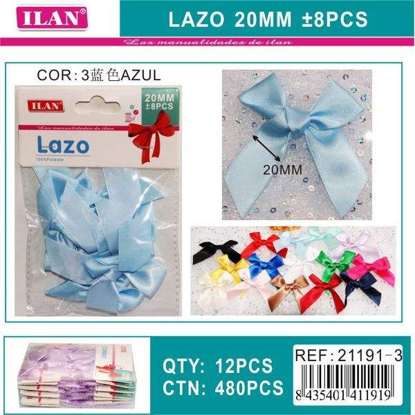 อิลัน ลาโซโบว์ริบบิ้นขนาด 20 มม- 8 ชิ้น สีฟ้าสำหรับงานประดิษฐ์ตกแต่ง