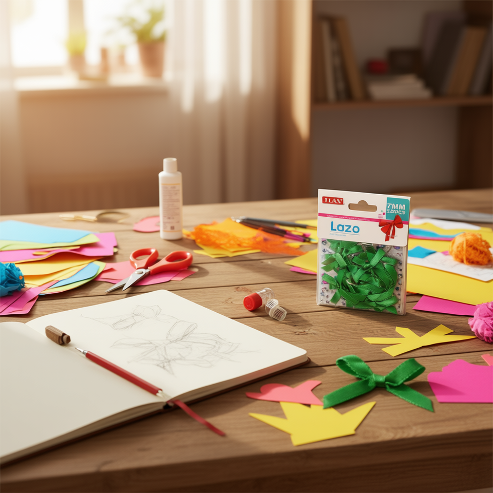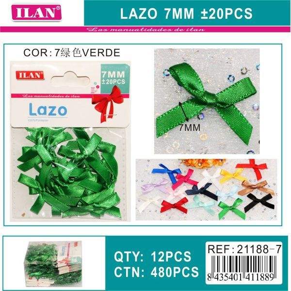 โบว์ริบบิ้นสีเขียวขนาด 7 มม. ยี่ห้ออิลัน ลาโซ สำหรับงานฝีมือและของตกแต่ง