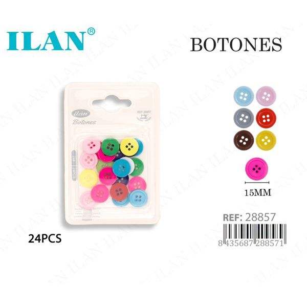 กระดุมหลากสีอิลัน 15 มม- 24 ชิ้นสำหรับงานเย็บผ้าและงานฝีมือ