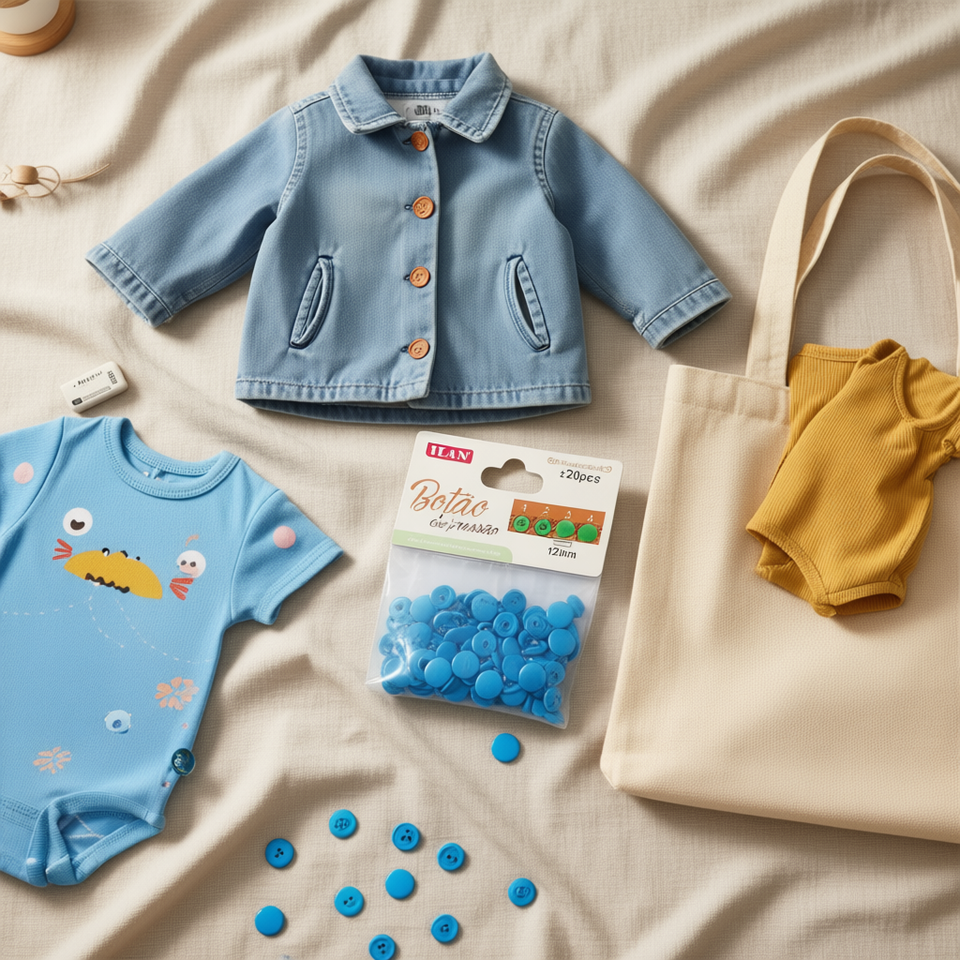 กระดุมพลาสติกแบบกด 12 มม. สีฟ้า 20 ชิ้น สำหรับเสื้อผ้า