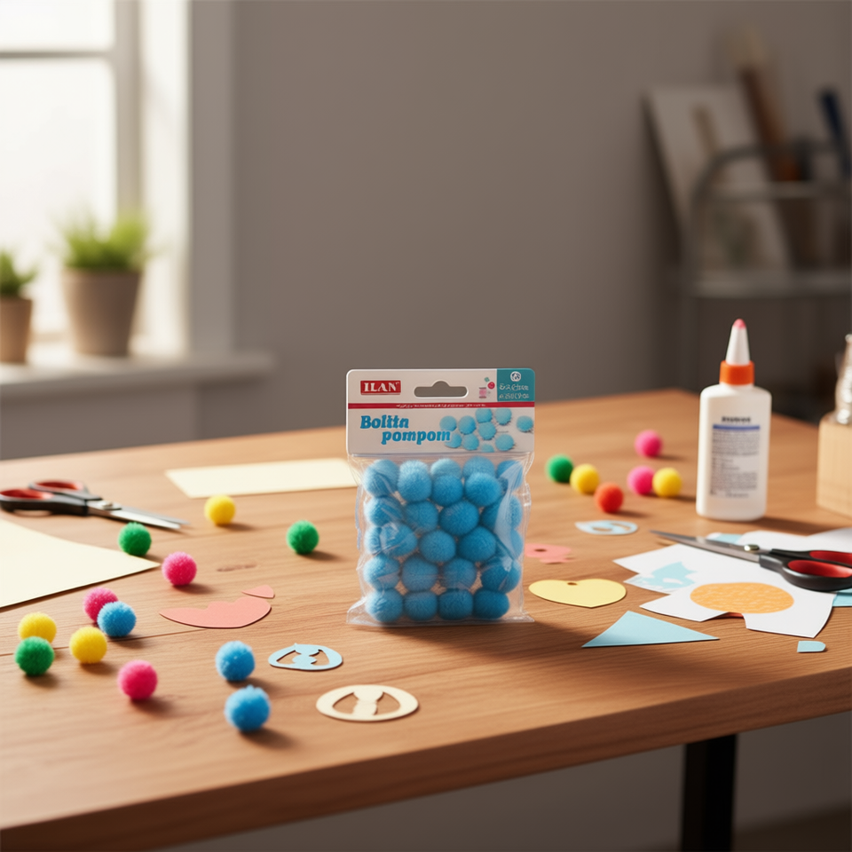 ลูกบอลปอมปอม Ilan ขนาด 2 ซม. สีฟ้า อุปกรณ์งานฝีมือสำหรับตกแต่ง DIY