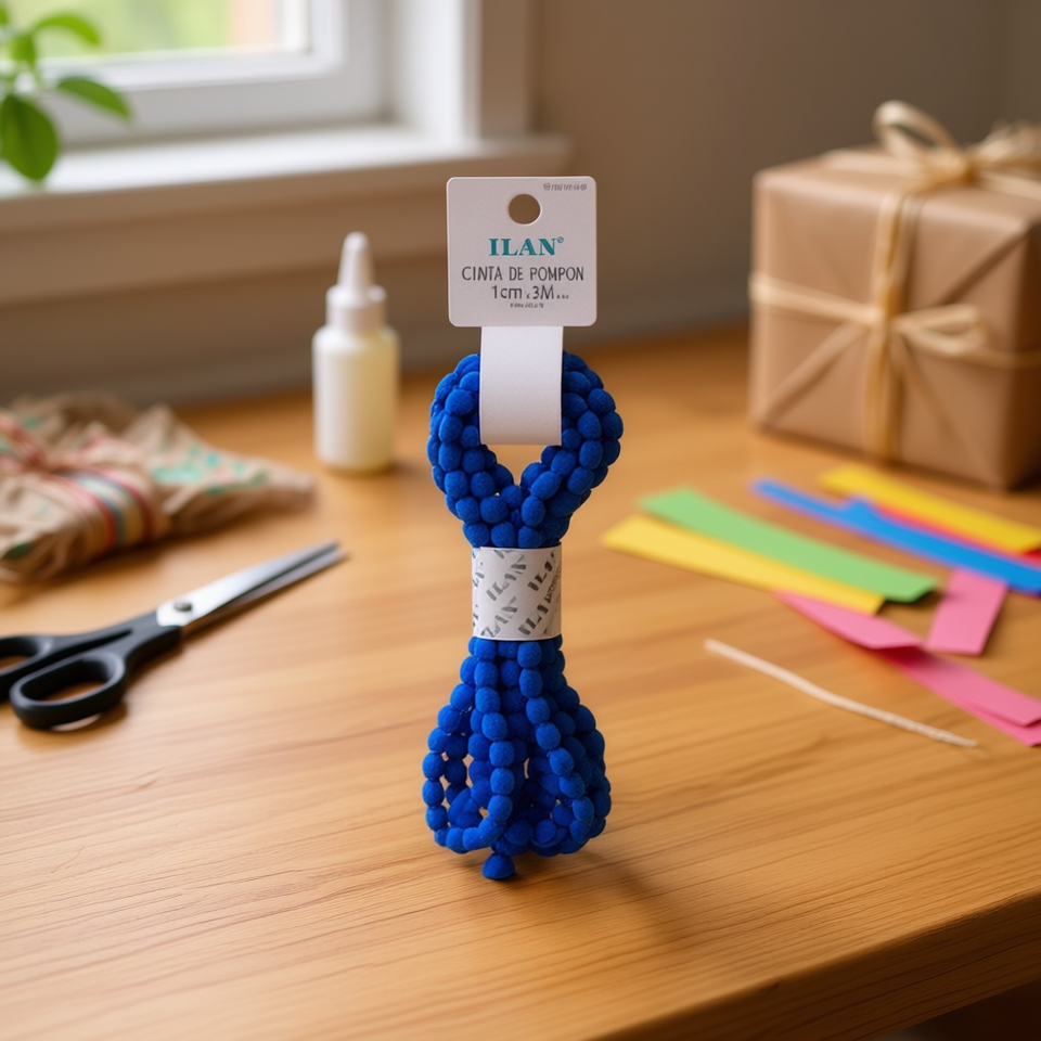 ริบบิ้นอิลัน ปอมปอม 1 ซม.x3 ม. สีน้ำเงินรอยัล สำหรับงานประดิษฐ์