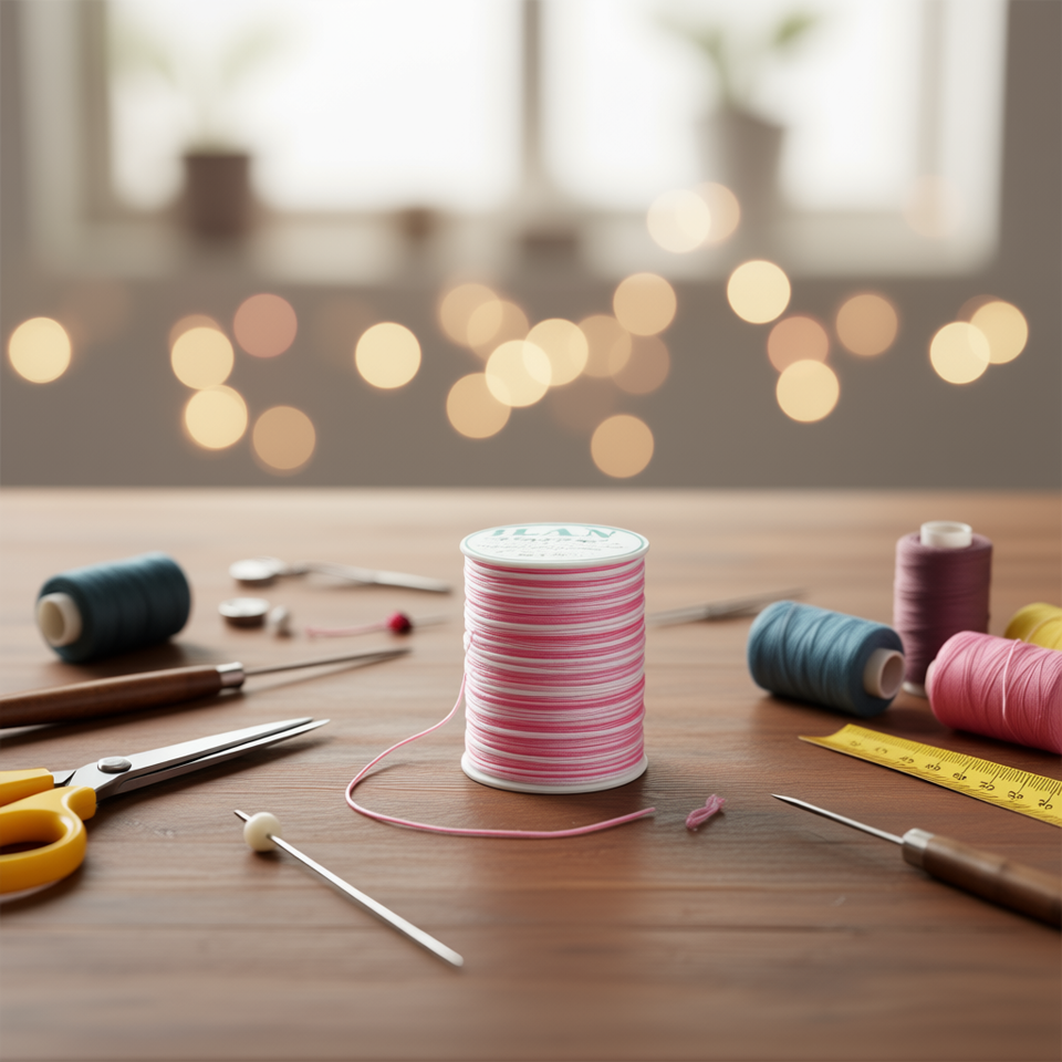 เชือกอิลัน ราตเทล คอร์ด ขนาด 2.5 มม. ยาว 50 ม. สีชมพูขาว ย้อมสี สำหรับถักกระเป๋า