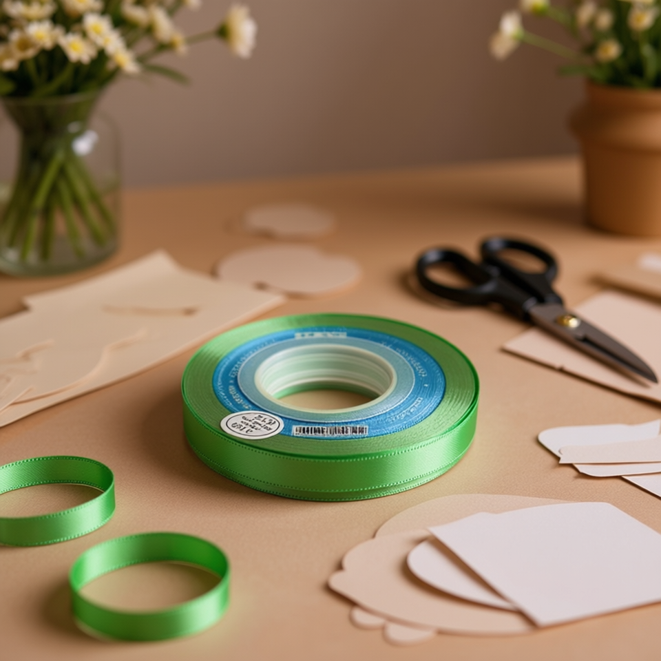 ริบบิ้นผ้าซาตินอิลัน 0.6 ม. 25 หลา สีเขียว D13