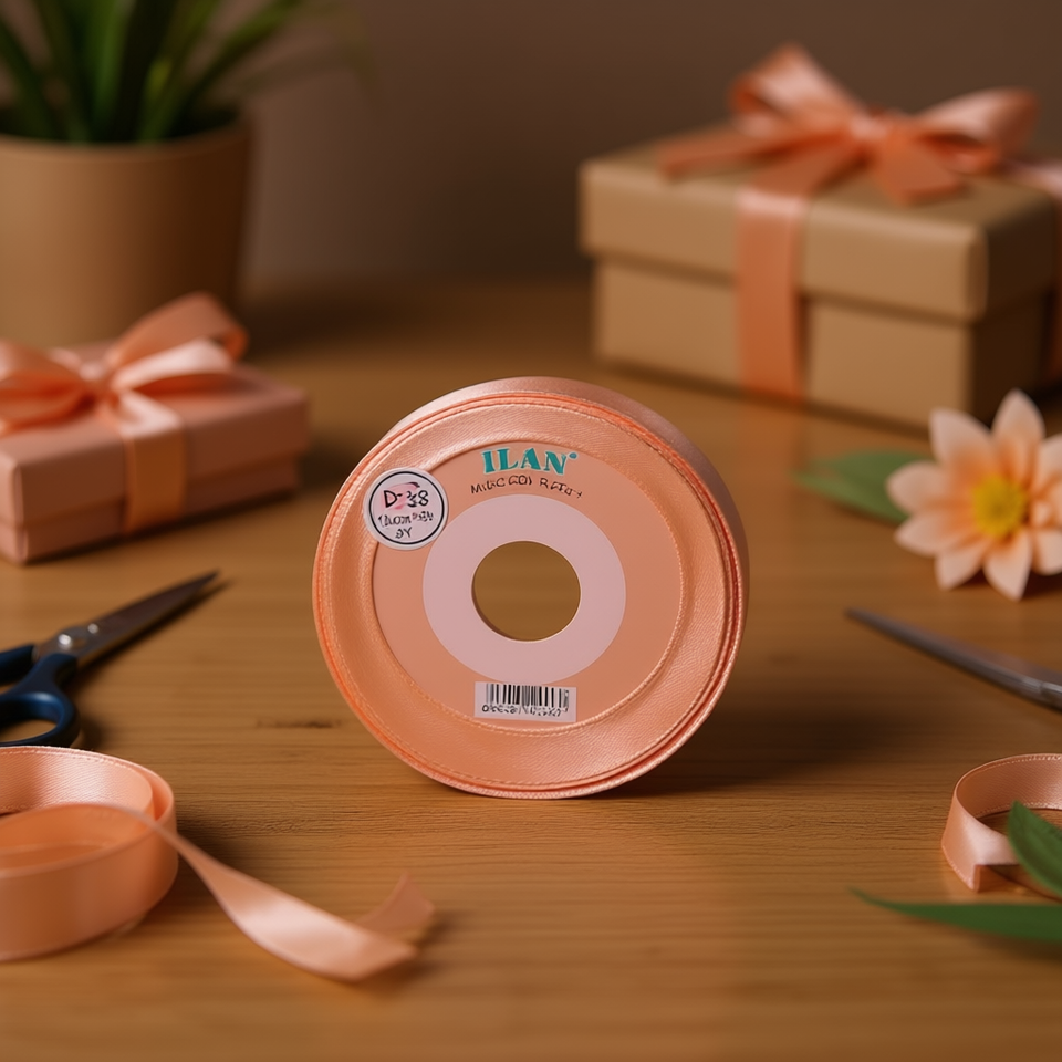 ริบบิ้นผ้าซาตินอิลัน 1.0 ซม. 25 หลา สีพีช เมลโคตอน D38