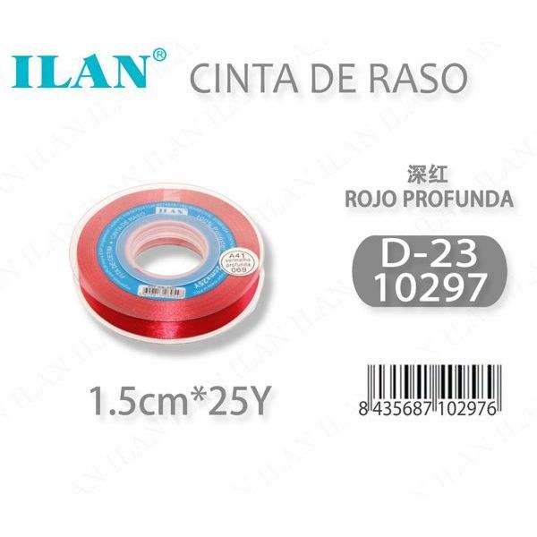 ริบบิ้นผ้าซาตินอิลัน 1.5 ซม. 25 หลา สีแดงเข้ม D23
