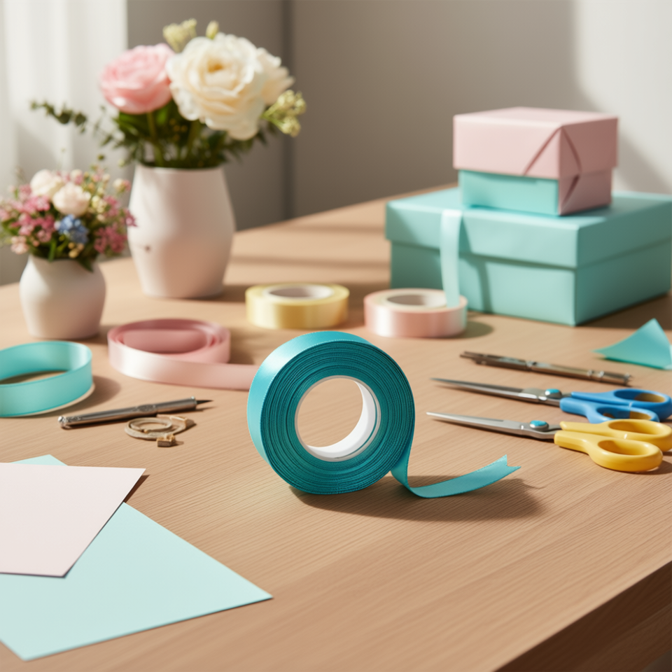 ริบบิ้นผ้าซาตินอิลัน 2.5 ซม. 25 หลา สีฟ้า D09