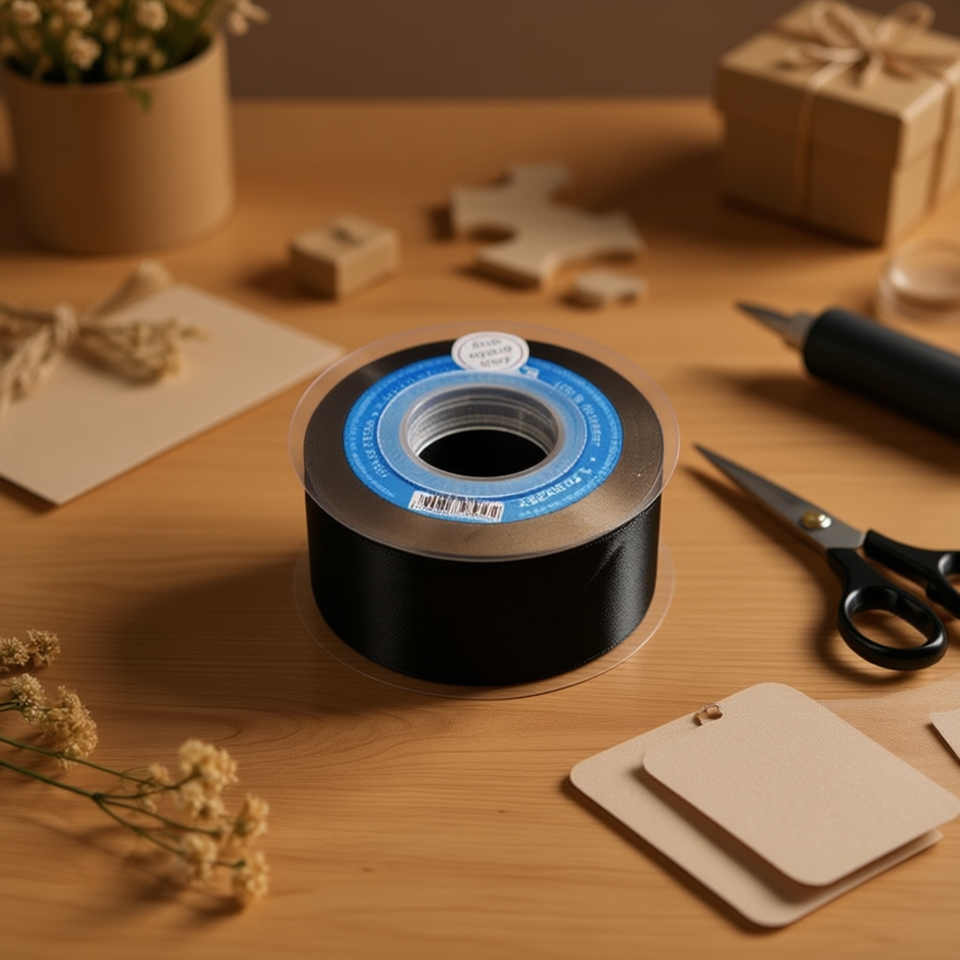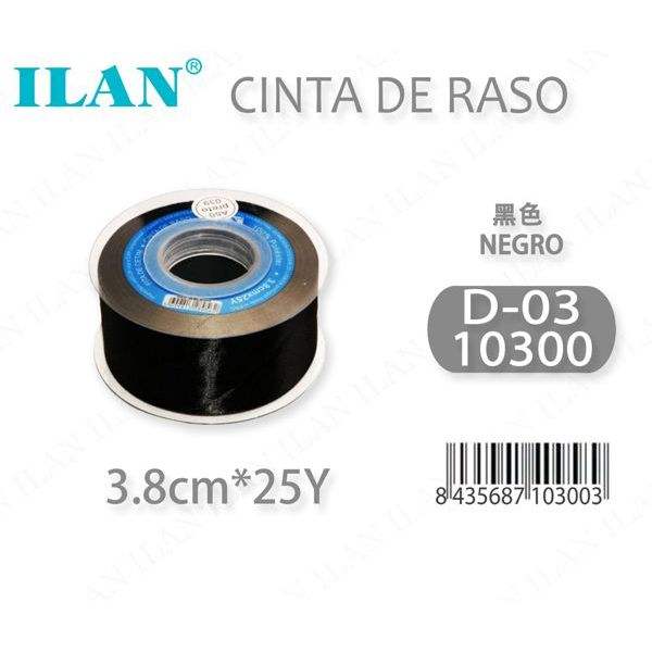 ริบบิ้นผ้าซาติน Ilan ขนาด 3.8 ซม. ยาว 25 หลา สีดำ สำหรับงานประดิษฐ์และตกแต่ง