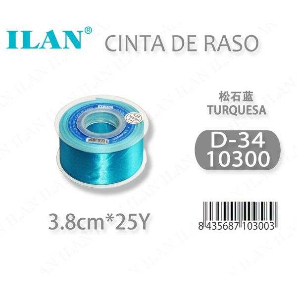 ริบบิ้นผ้าซาตินอิลัน 3.8 ซม. 25 หลา สีเทอร์ควอยซ์ D34